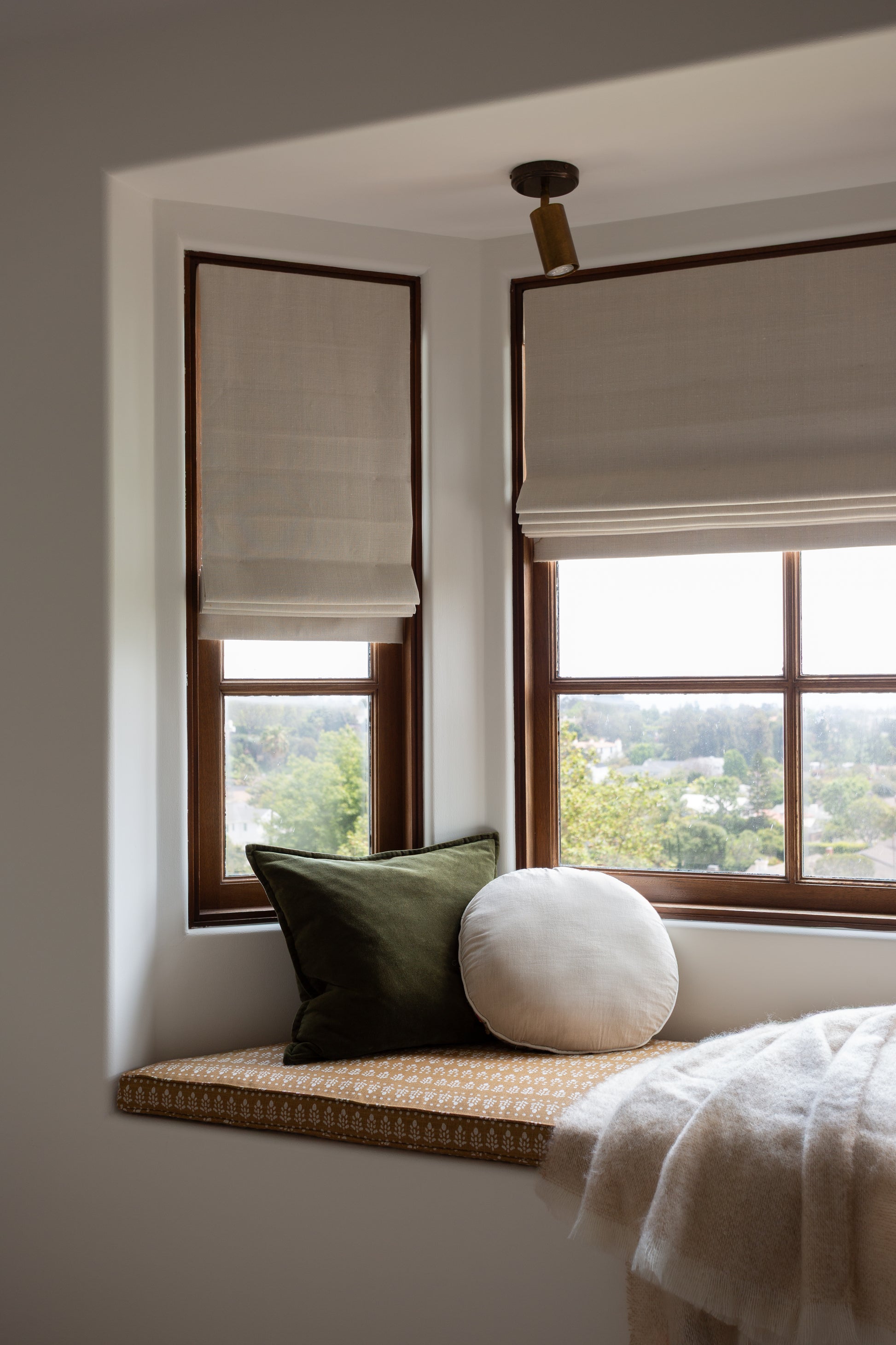 The directional brass spot light elevates spaces with its simple, functional design. The cylindrical brass body can be rotated in any direction.